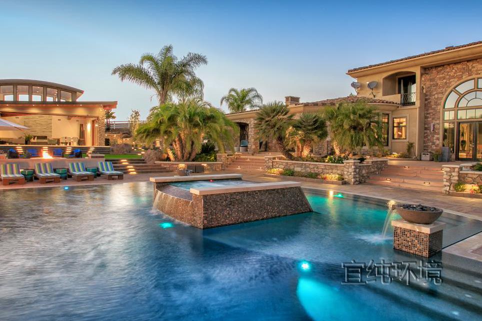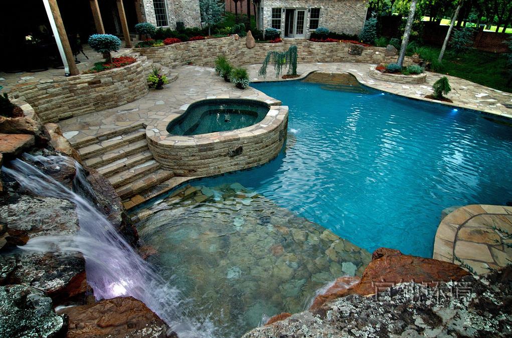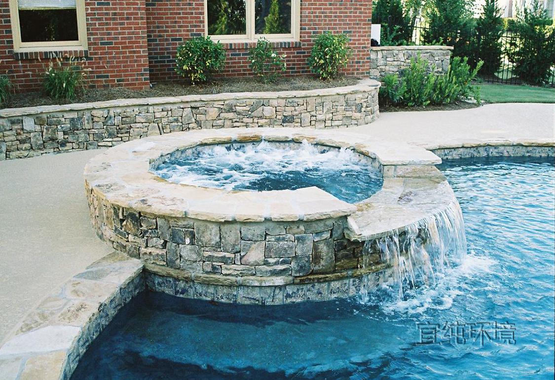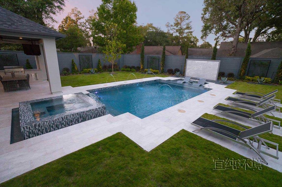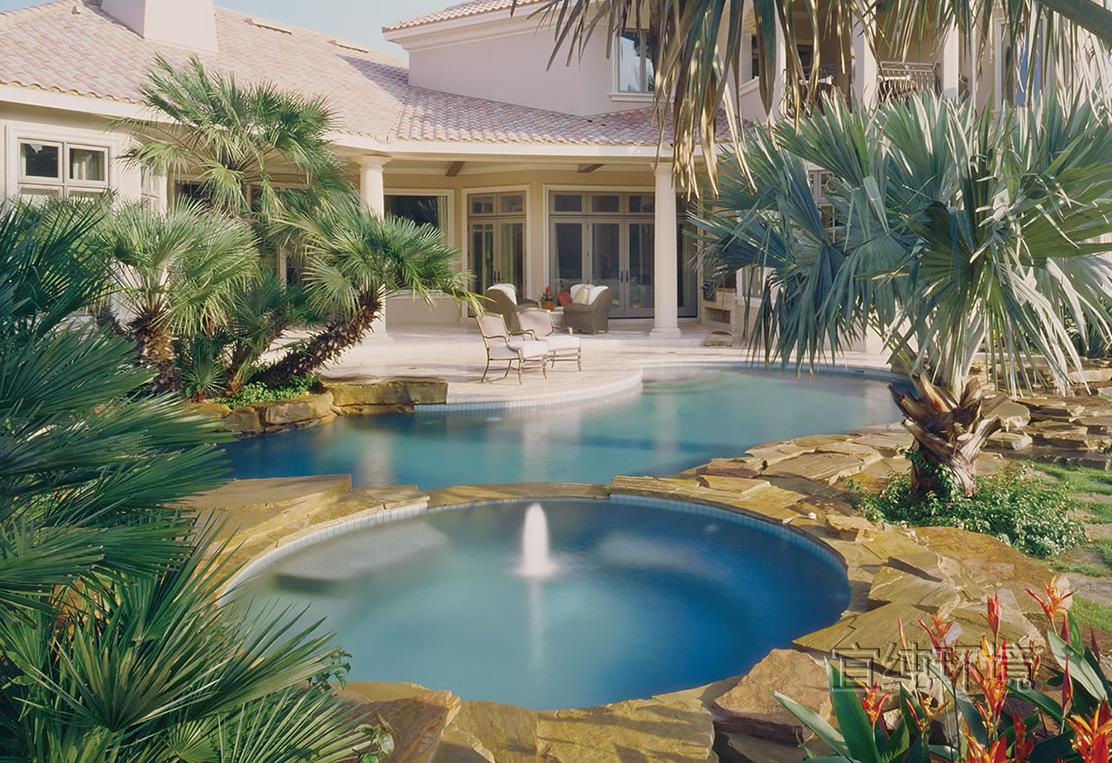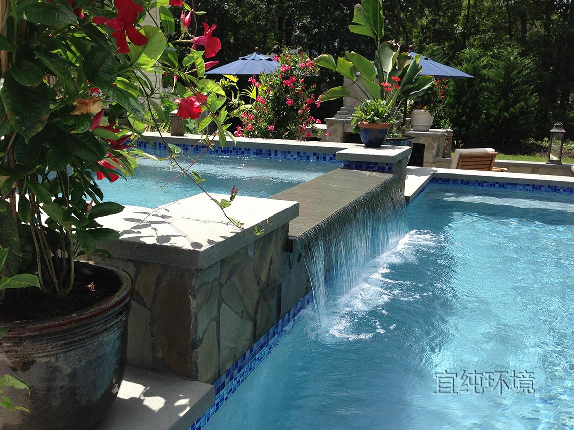 很多人不喜欢在院子里修泳池,觉得泳池占地方,除了夏天游泳以外,似乎没太多用处。其实,庭院里的泳池,不仅仅可以游泳,还可以当作水景观赏!为什么这么说呢?这是因为在泳池使用的时候,如果不用,蓄满水,它就是一个天然的静水池,看起来很养眼。要是我们在做泳池的时候,给泳池做一个出水口,加一套循环系统和净化池,那么,泳池就是一处水景景观,即使不用来游泳,也有景可赏!
