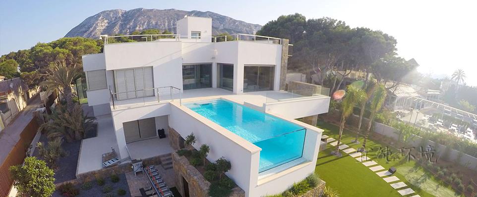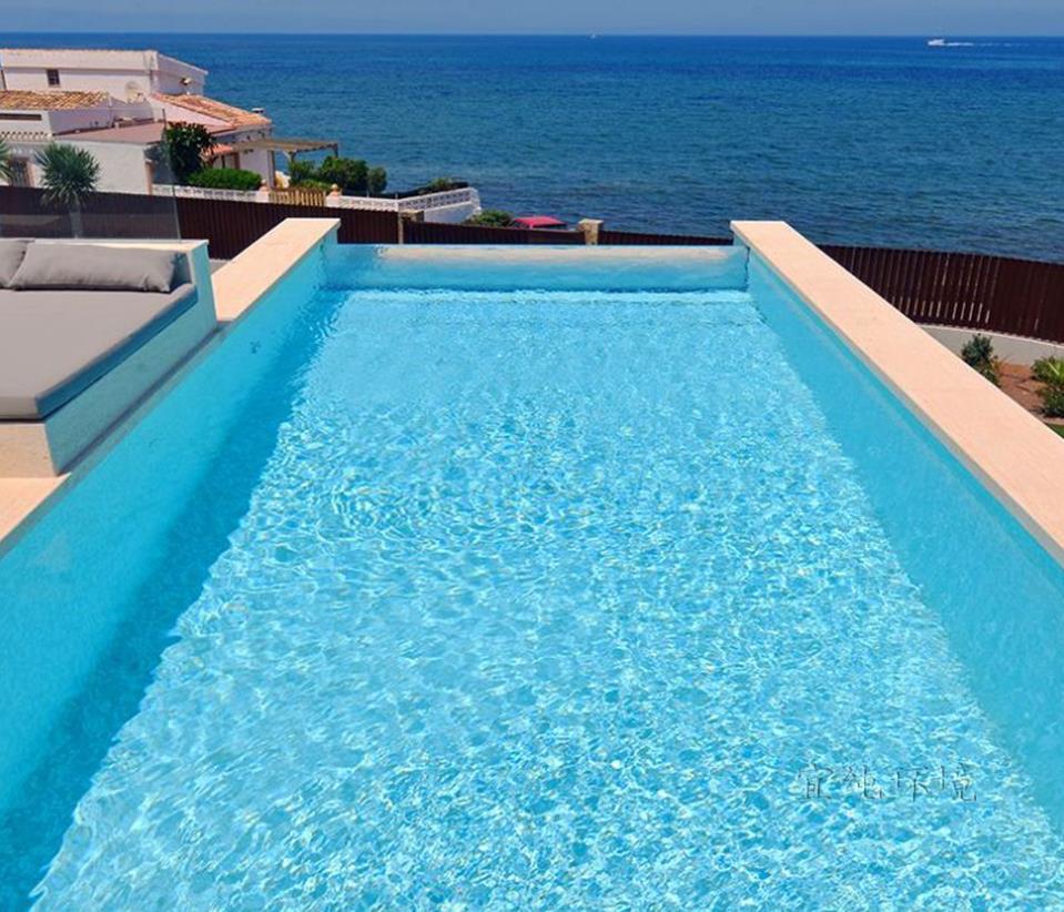 空中玻璃泳池犹如大海边上一汪清泉,"泉水"逐渐向海边蔓延。"水空中游泳池天相接"处,仿佛应该有一道瀑布飞流直下。泳池透明的侧墙或地板模糊了这些水下乐园和周遭空间之间的界限,每一个让你跃跃欲试、过目不忘。阳光下清澈透明的池水波光粼粼, 泳池池水的尽头与大海相接。无论是蓝天白云还是夜晚星空下,畅游于碧蓝的海洋之中,真是一种唯美的感官体验。