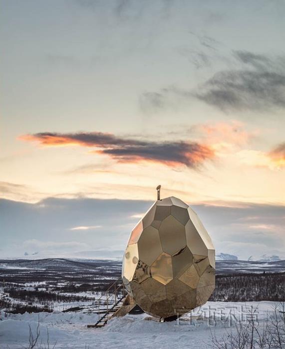 都知道北欧人喜欢蒸桑拿,Bigert & Bergstrom工作室在瑞典基律纳郊外设计了一颗“黄金蛋”桑拿屋——SOLAR EGG,以此作为当地开发商Riksbyggen进行的城市改造项目的一部分。