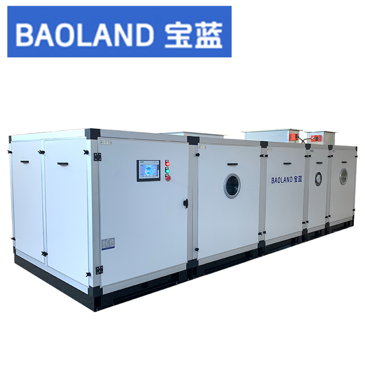 BAOLAND宝蓝品牌泳池专用热泵型除湿空调,用于室内泳池恒温恒湿。机组通过通风循环系统与制冷循环系统,在实现除湿功能的同时,将泳池蒸发到空气中湿热蒸汽的潜热及显热回收并将回收的热量转移到池水和空气中,用来弥补池水和空气的热损失,以实现除湿、空调和池水恒温等功能,是一种综合型能量利用设备,能够控制室内泳池空间的温度和湿度。